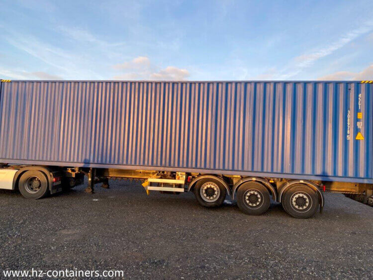 Un honnête conteneur de transport en acier 40′ High Cube en qualité IICL 6 et couleur RAL 5010 est un investissement dans la sécurité et l’efficacité de votre transport ou stockage. Disponibilité en entrepôt à Rotterdam, fourniture rapide de documents pour l’enlèvement et garantie de qualité standardisée – c’est une offre qui vous mènera plus loin. Vous pouvez facilement organiser le transport et le déchargement selon vos propres besoins.